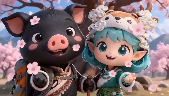 敢敢和灵灵在工布江达的桃花树下等“您”