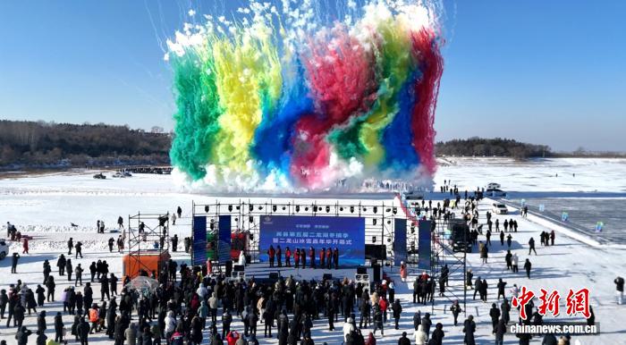 1月23日,哈尔滨市宾县第五届二龙湖冬捕节在二龙湖冰面启幕。 赵子游 摄