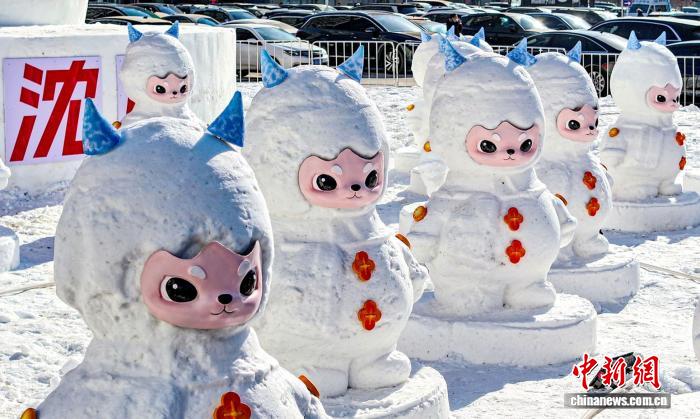 大雪人周边环绕着34个可爱的小雪人。浑南区委宣传部供图