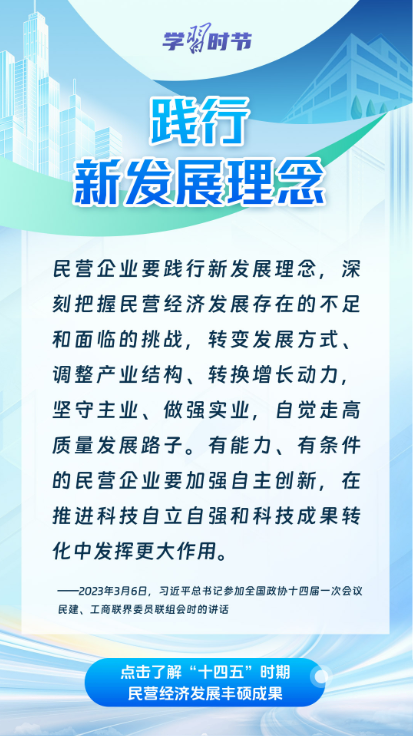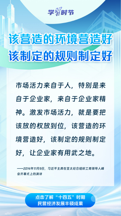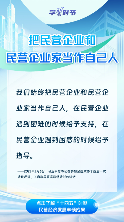 “十四五”时期,广大民营企业和民营企业家笃定信心、乘势而上,为中国经济高质量发展注入了蓬勃生机与强劲动能。通过一组海报,共同学习习近平总书记关于民营经济发展的重要论述,回顾“十四五”时期我国民营经济破浪前行、活力迸发的生动实践与丰硕成果。