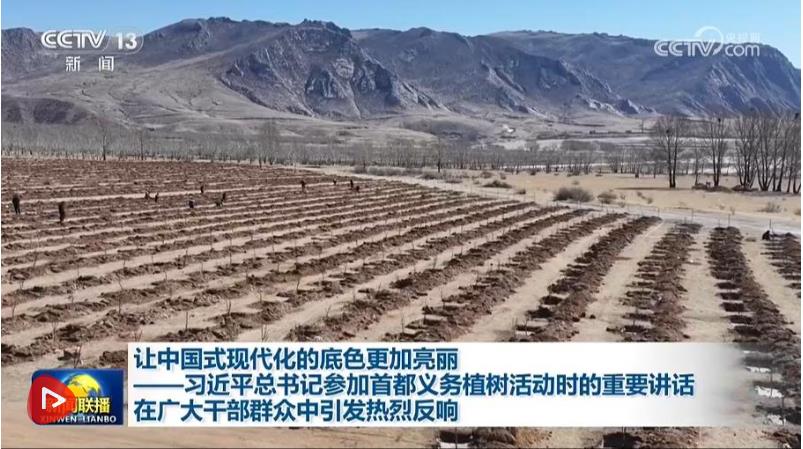 央视网消息(新闻联播):习近平总书记在参加首都义务植树活动时强调,良好生态人人共享,也需要合力共建。要组织动员全社会广泛参与植树造林,为山川大地增添锦绣,让中国式现代化的底色更加亮丽。总书记的重要讲话在广大干部群众中引发热烈反响,大家表示,要牢记总书记嘱托,积极参与植树造林,践行绿色发展理念,合力共建良好生态,持续推进美丽中国建设。
