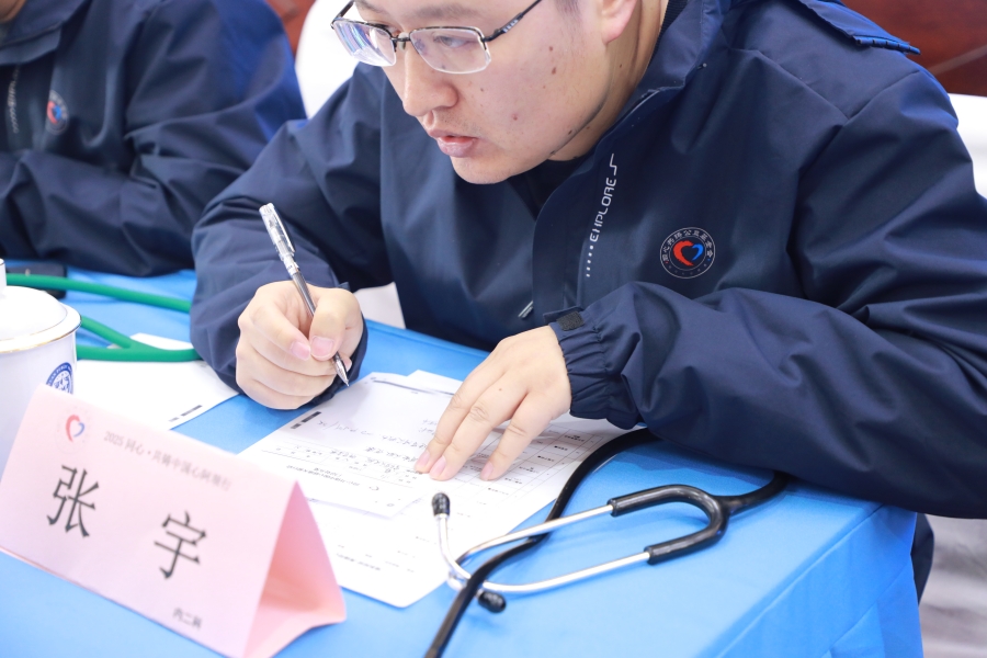 图为北京市通州区妇幼保健院药剂科主任马月静根据现场情况做相应记录。此次义诊结束后,马月静还为干警们进行了安全用药科普知识讲座 摄影:杨月云