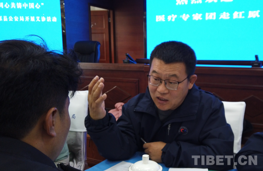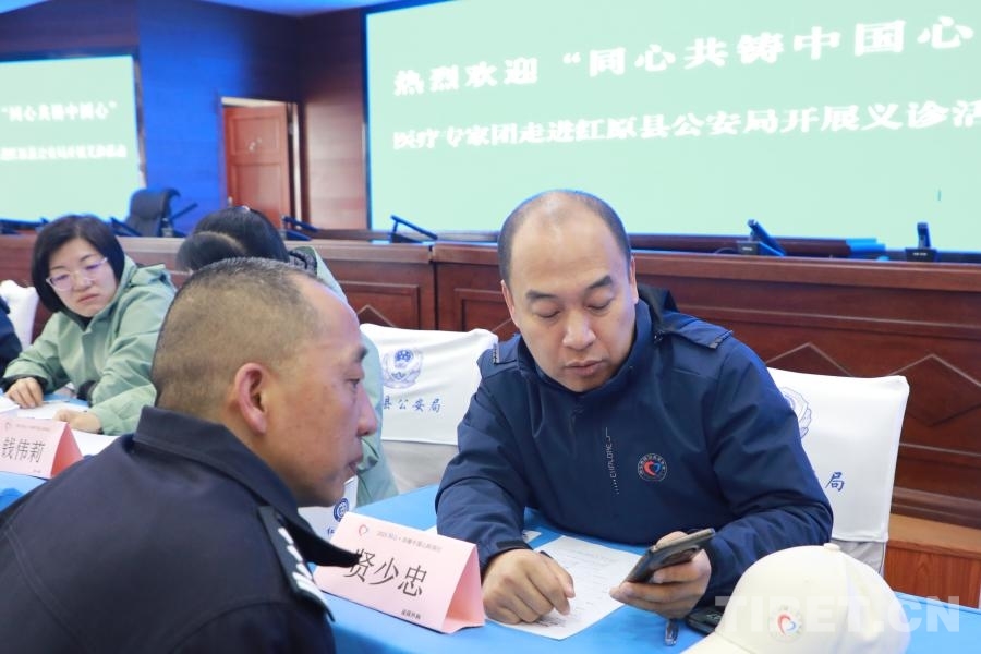 5月17日,在此次活动阿坝州红原县现场之一,“红九团红二连”来自北京通州区各医院的12位医生,在红原县公安局面向有就诊需求的公安干警展开义诊。