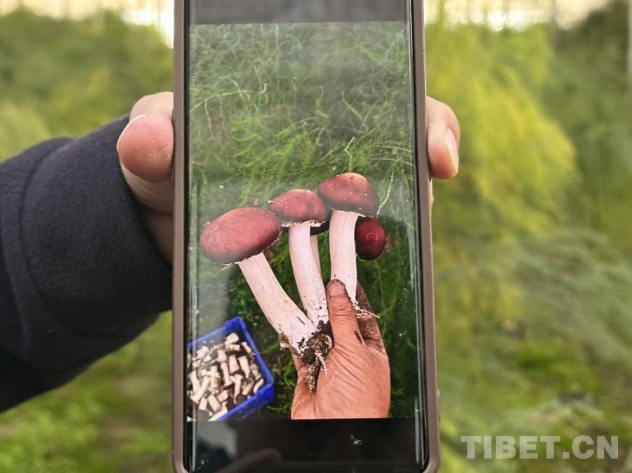 图为李东平展示手机里的赤松茸照片 摄影:杨眉笑
