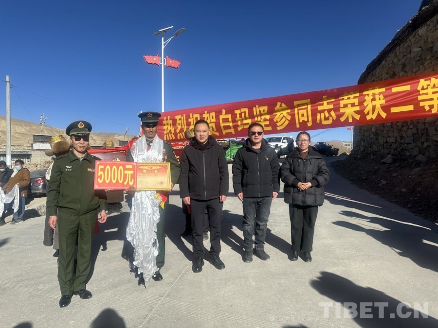 中国西藏网讯 近日,西藏南木林县军地联合专程前往达孜乡达孜村,为连续荣立二等功的现役军人白玛坚参家庭送上喜报、慰问金及“二等功臣之家”牌匾,让军功荣耀直抵家门,让尊崇关爱浸润军属心田。