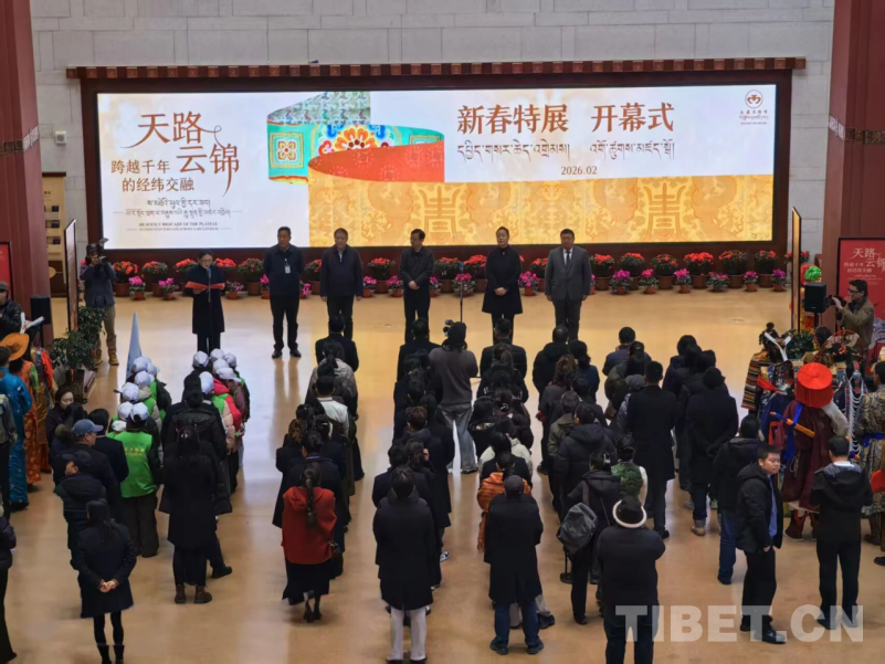 图为在西藏博物馆举办的“天路云锦”主题展览现场