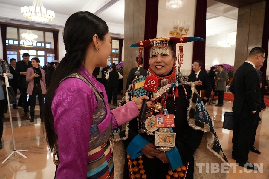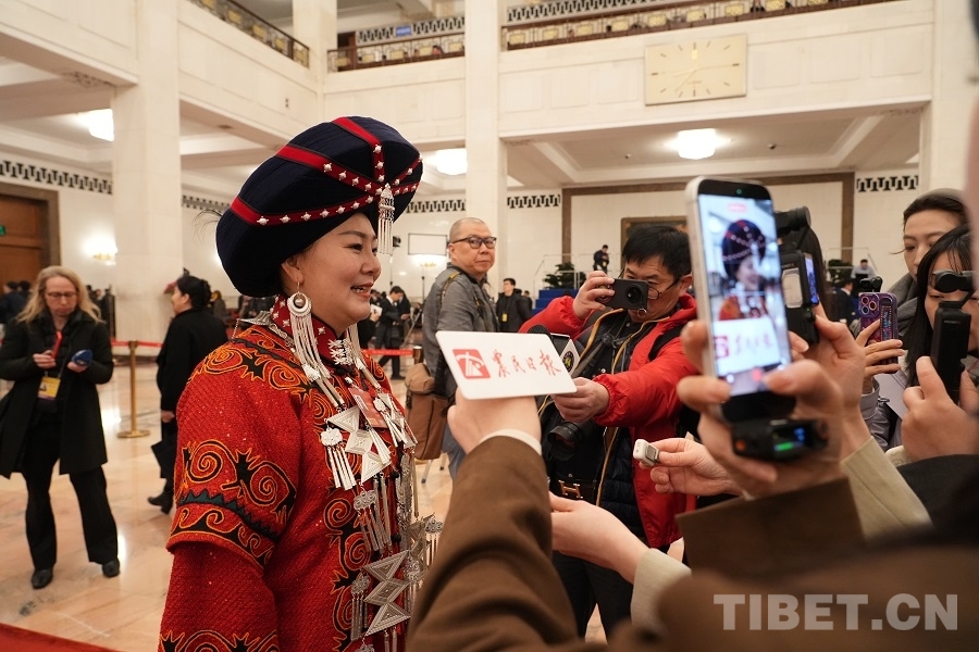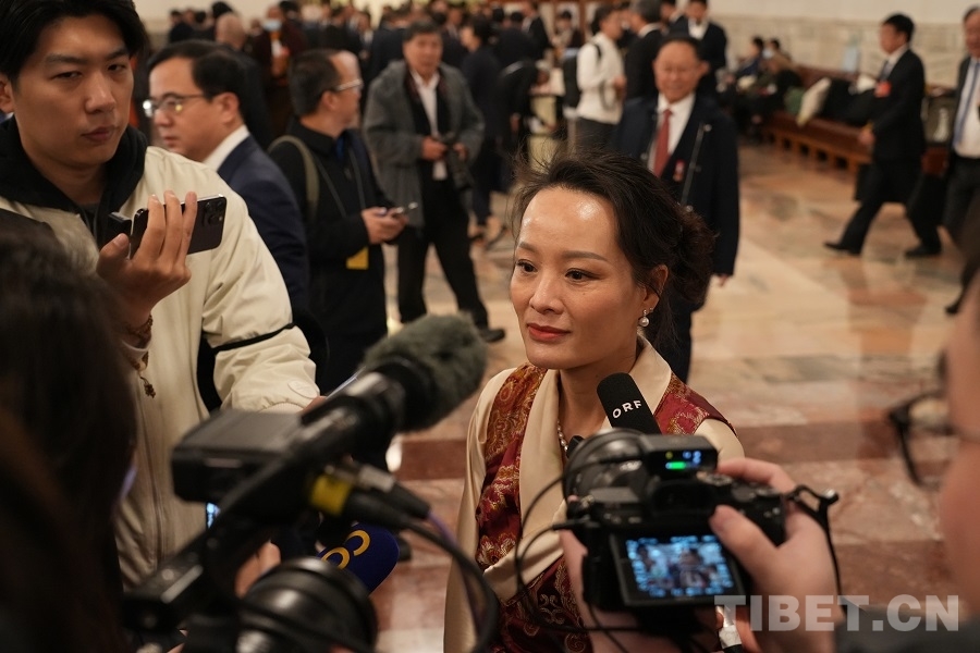 西藏代表团格桑卓玛代表接受媒体采访 摄影:边子捷