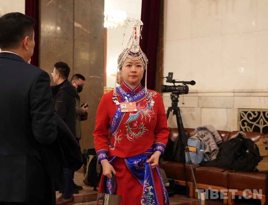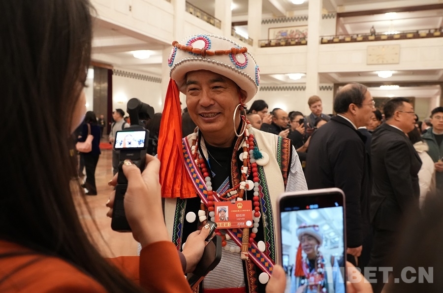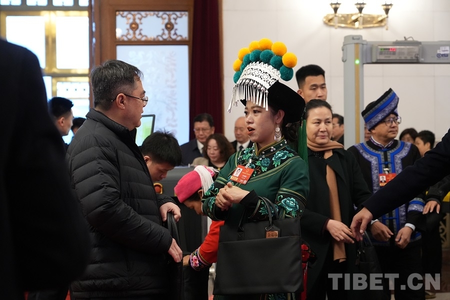 中国西藏网讯 3月5日上午,十四届全国人大四次会议在人民大会堂开幕。开幕会前,身着民族服饰的人大代表们步入会场,接受媒体采访。(中国西藏网 记者/边子捷 刘莉 编辑/王妍丹)