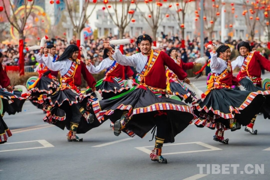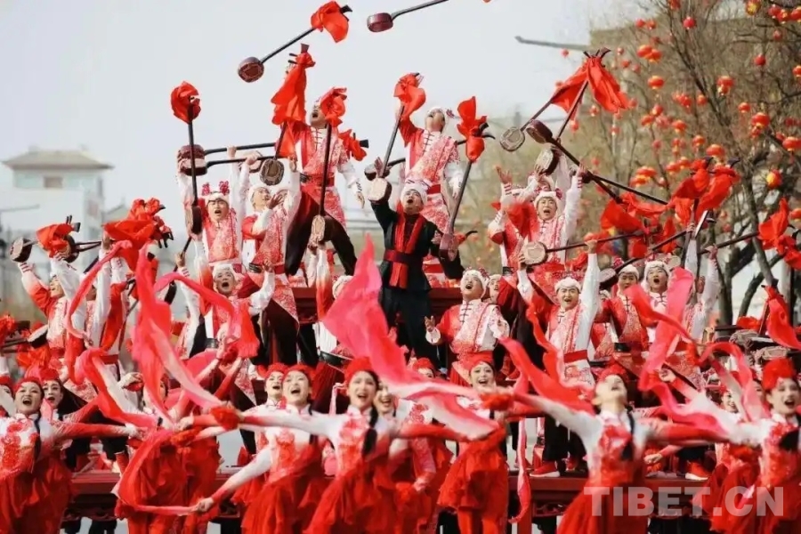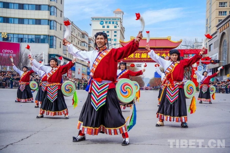 中国西藏网讯 2月20日至3月3日,“陕北榆林过大年”秧歌展演在陕西榆林古城举行。活动汇聚了多地民俗精品与非遗队伍,来自西藏山南市的国家级非物质文化遗产项目——琼结久河卓舞也亮相其间。