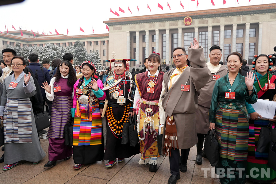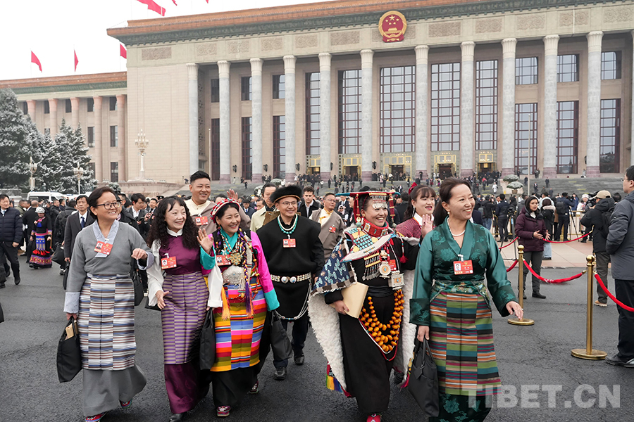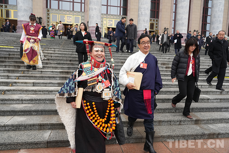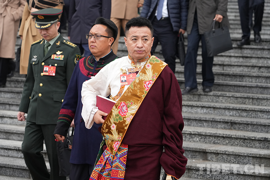 来自西藏自治区的全国人大代表走出会场 摄影:边子捷
