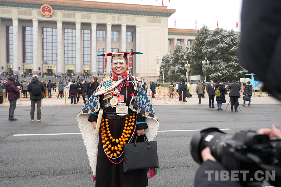 西藏代表团格桑卓玛代表接受媒体采访 摄影:边子捷