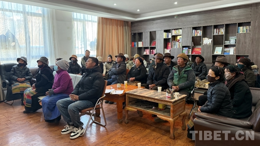 萨迦县萨迦镇干部群众认真观看十四届全国人大四次会议开幕会 萨迦县宣传部供图