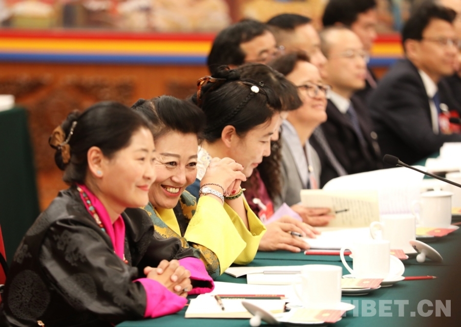 十四届全国人大四次会议西藏代表团开放团组会议活动现场氛围热烈