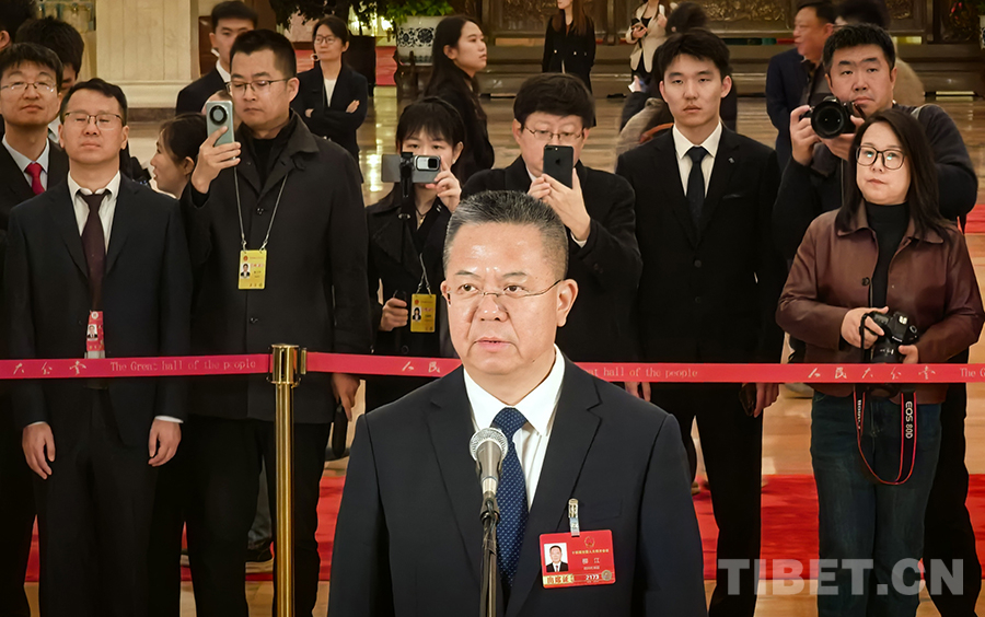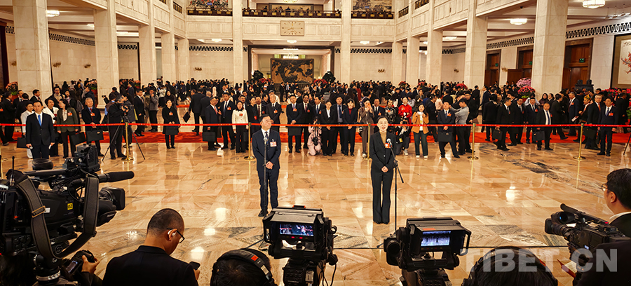 中国西藏网讯 3月9日,第十四届全国人民代表大会第四次会议第二场“代表通道”集中采访活动在人民大会堂举行,邀请6名全国人大代表接受采访。(中国西藏网 记者/刘莉 边子捷 摄影报道)