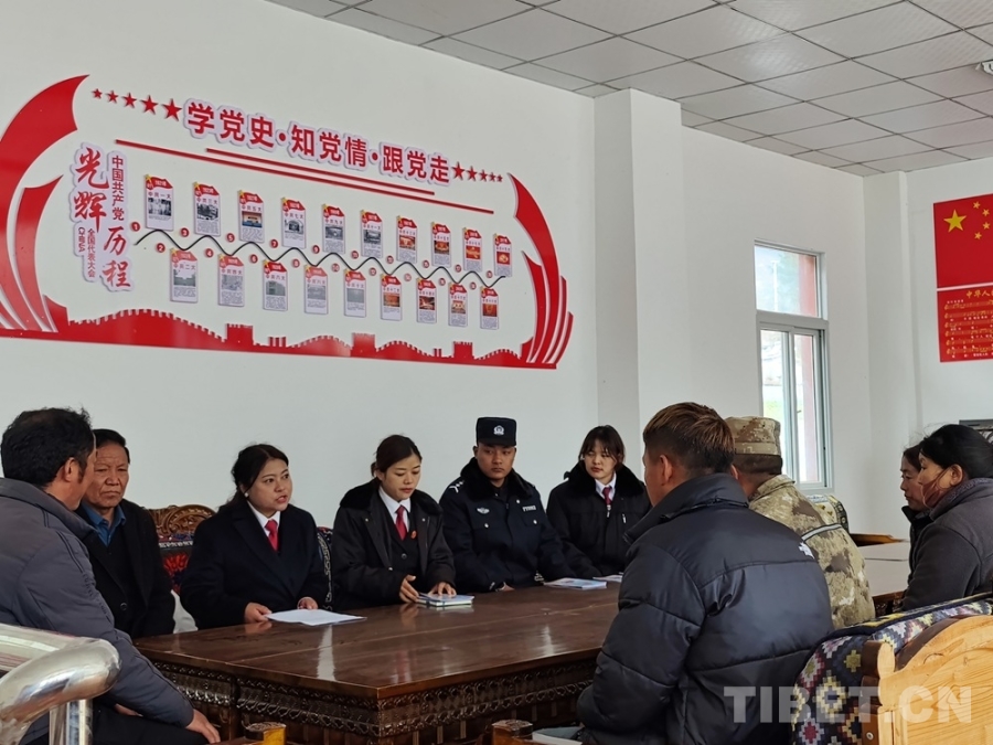 白玛玉珍(左三)为基层百姓普法 受访者供图
