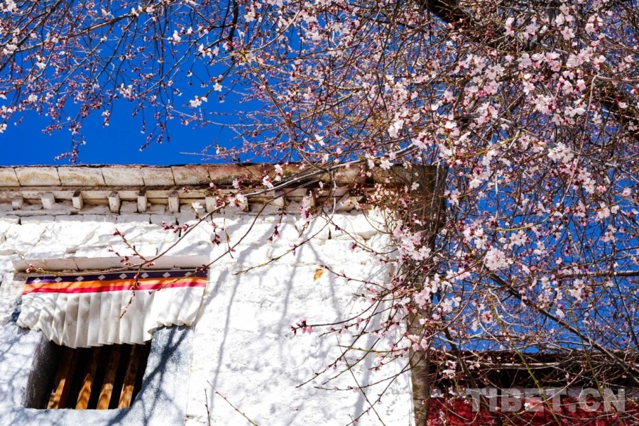帕邦喀寺盛开的桃花,在门窗的映衬下别有一番风景 摄影:赵振宇