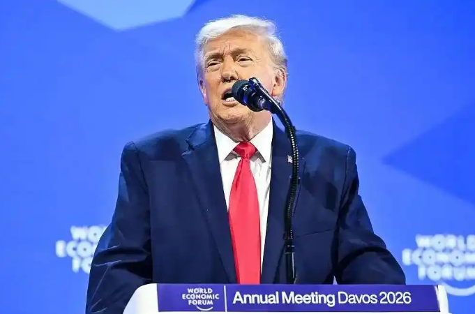 图为美国总统特朗普在世界经济论坛年会上发表演讲 图源:央视新闻
