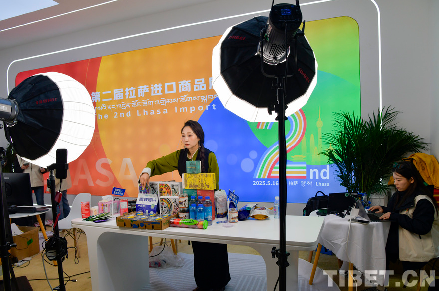 图为电商主播在2025第二届拉萨进口商品展览会 摄影:赵振宇