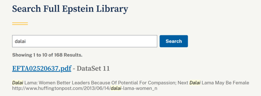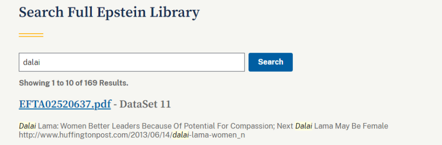 2月5日,媒体发现关键词“dalai”在爱泼斯坦档案中出现168次