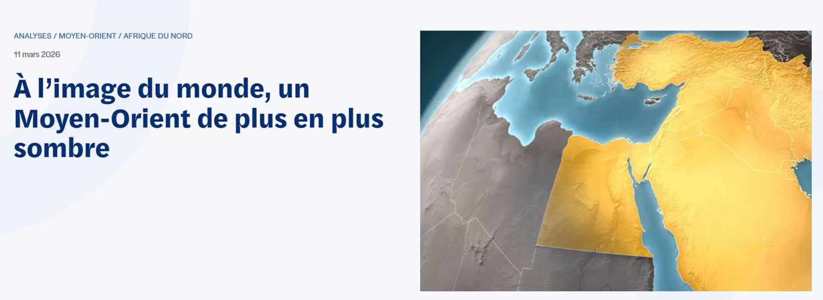 法国国际与战略关系研究所(IRIS)网站3月11日刊登了法国地缘政治学专家迪迪埃·比隆(Didier Billion)撰写的文章,题为《正如世界局势所示,中东局势日益严峻》。文章指出,2月28日爆发的中东冲突将被载入史册,标志着岌岌可危的国际关系规则再次被打破。