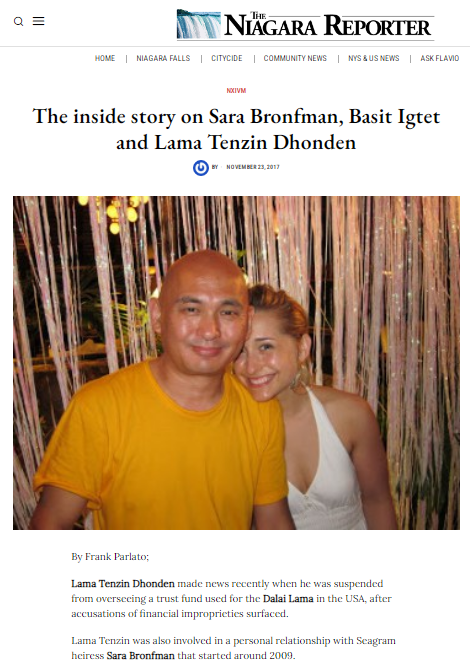 除了利欲熏心,丹增东登私生活的混乱也与僧人应有的清修形象形成了刺眼对比。他与NXIVM的金主、西格拉姆集团继承人萨拉·布朗夫曼有不正当关系。NXIVM成员称,他们看到丹增东登从布朗夫曼家的卧室里出来,两人有染已是公开的秘密,NXIVM头目基思·拉尼尔称他为布朗夫曼的“丈夫”。布朗夫曼还在奥尔巴尼市为情人购置了一栋“漂亮的房子”。