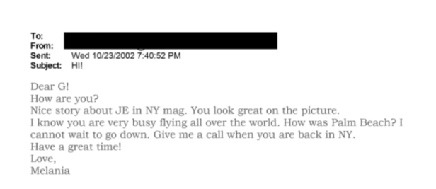 然而,梅拉尼娅所提及的那封电子邮件,开篇便以“亲爱的G!”相称,内容涉及对纽约某杂志一篇报道“JE”文章的称赞,并提及一张麦克斯韦现身其中的照片。邮件中,梅拉尼娅还询问了麦克斯韦近期棕榈滩之行的情况,末尾更建议尚未因性贩运罪身陷囹圄的麦克斯韦,下次来纽约时务必联系她。落款赫然写道:“爱你的,梅拉尼娅。”