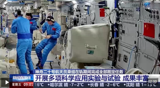 在轨期间,神舟二十号展开了覆盖空间生命科学、微重力基础物理、空间材料科学、航天医学、航天新技术等领域,取得了阶段性成果。典型成果包括: