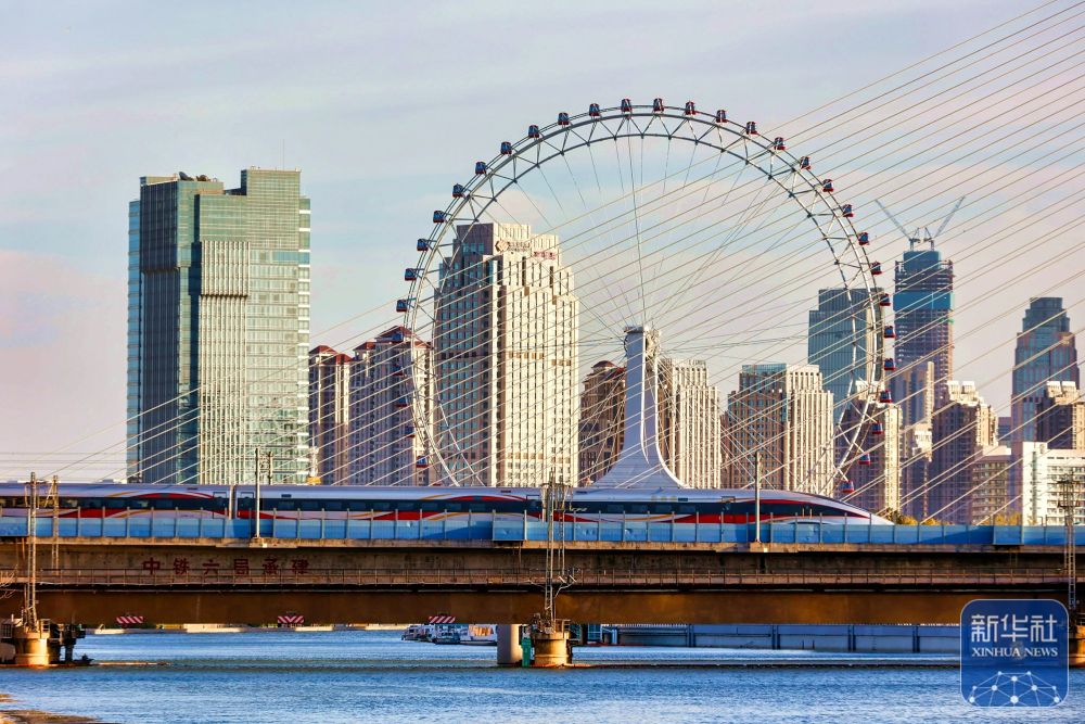 11月16日,动车组列车行驶在天津市境内。新华社发(杜鹏辉摄)