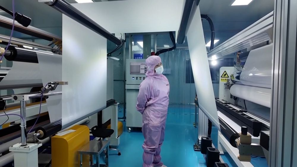 在园区内的湖南壹鑫科技有限公司无尘生产车间,光学薄膜自动化生产线正满负荷运转。