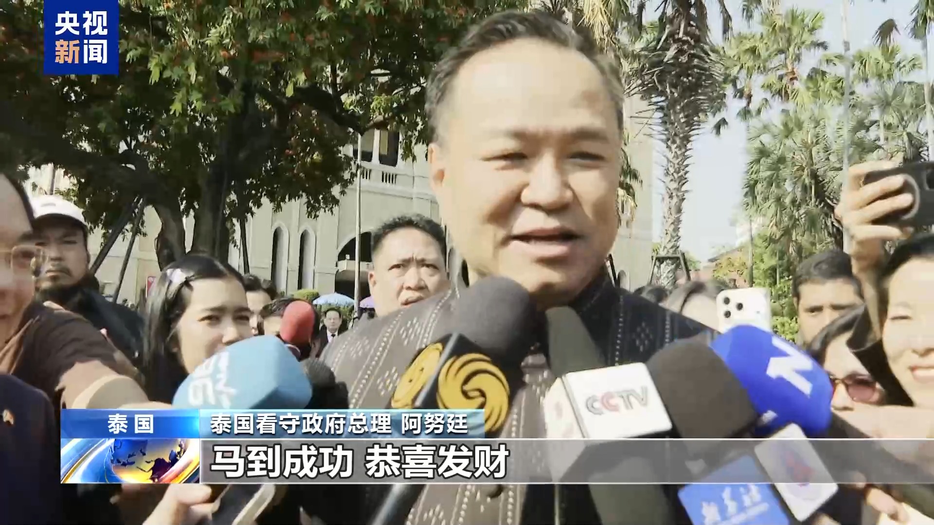 泰国看守政府总理 阿努廷:马到成功,恭喜发财,身体健康,生意兴隆。