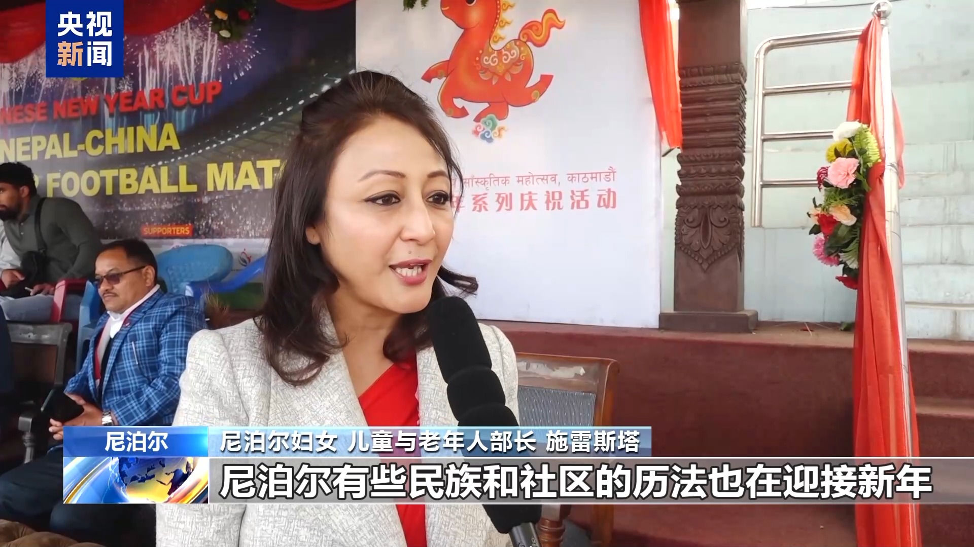 尼泊尔妇女、儿童与老年人部长 施雷斯塔:今年是中国农历马年,尼泊尔有些民族和社区的历法也在迎接新年,春节不仅仅是中国人的农历新年,尼泊尔也处在欢乐的节日气氛当中。新春快乐,马上成功。