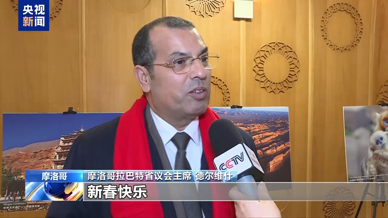 摩洛哥拉巴特省议会主席 德尔维什:今年是中国农历马年,在阿拉伯文化中,马同样象征着力量、坚韧和勤奋。祝你们未来一年充满成功和机遇,也希望摩中两国人民、两国政府之间的关系能够进一步巩固和发展。新春快乐。