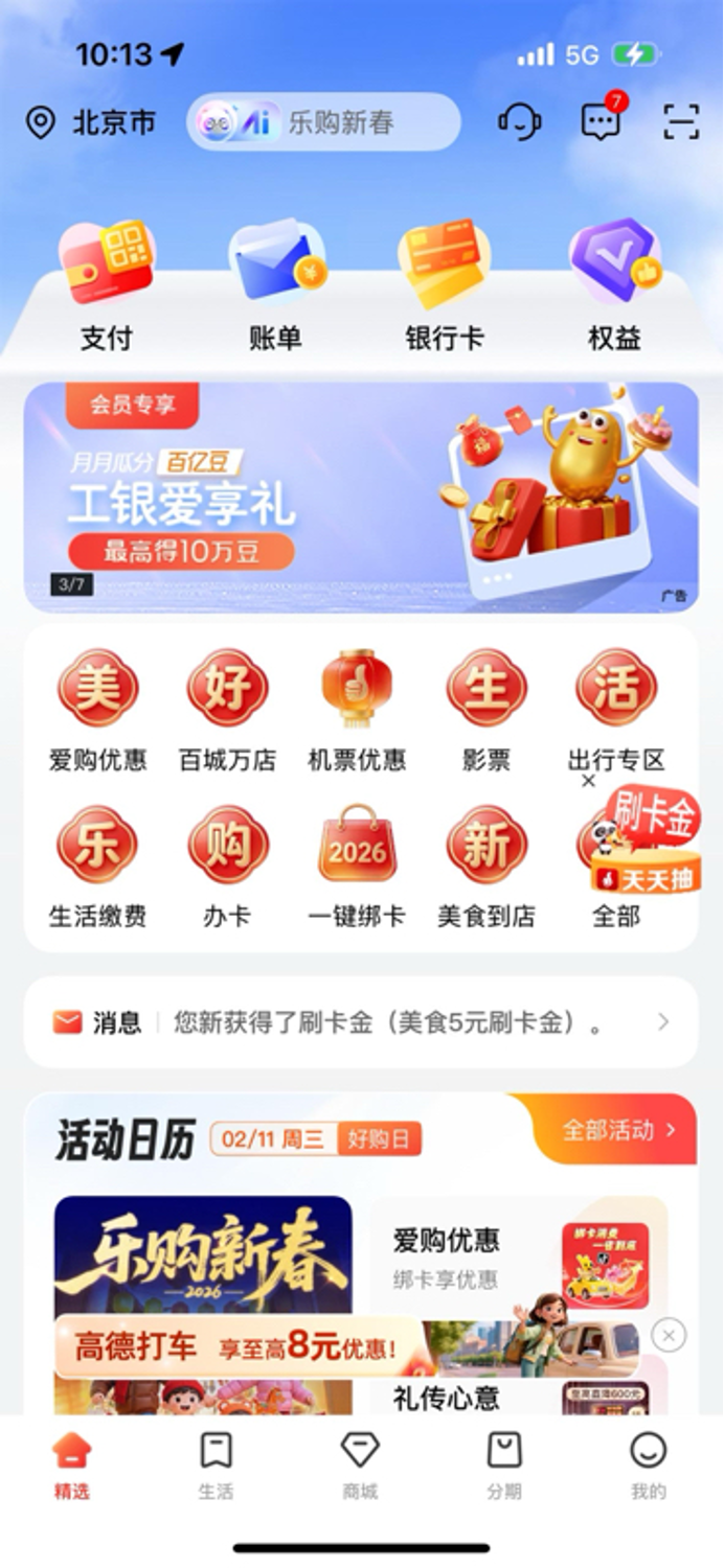 在工银e支付收银台完成符合刷卡金核销门槛的消费。完成满足条件的消费后,刷卡金将立即汇入客户的消费账户中,可以通过工银e生活App消息中心查看入账信息。