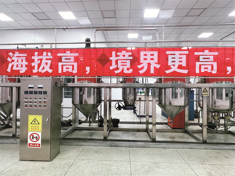 2021年10月,左贡旺达食品有限公司正式成立。左贡县建立起了现代化的核桃油加工厂,通过引进国内先进精炼设备,采用一级液压,二级螺旋压榨的技术,一颗颗山核桃经过精心的压榨和提炼,变成了色泽金黄、香气扑鼻的核桃油。“冷榨技术不破坏核桃的营养价值,同时由于气温低,核桃油的生产过程中不会产生黄曲霉毒素等有害物质。核桃的销售价格在2元至5元一斤,生产为核桃油后销售价格为100元一瓶。这不仅极大地提升了山核桃的附加值,也为当地居民提供了就业机会,让他们在家门口就能赚钱养家。当地群众采摘核桃的积极性高涨,采摘旺季,公司门口卖核桃的队伍每天排着长龙。”申开成高兴地说。