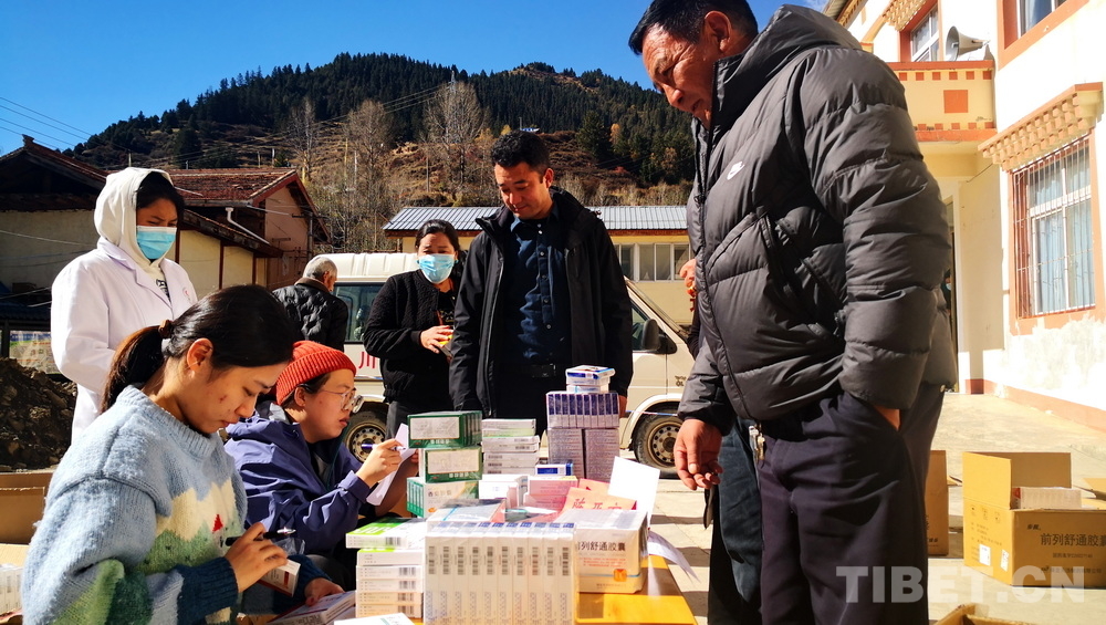 图为医疗专家前往四川省阿坝藏族羌族自治州若尔盖县为患者发放药品 摄影:刘莉