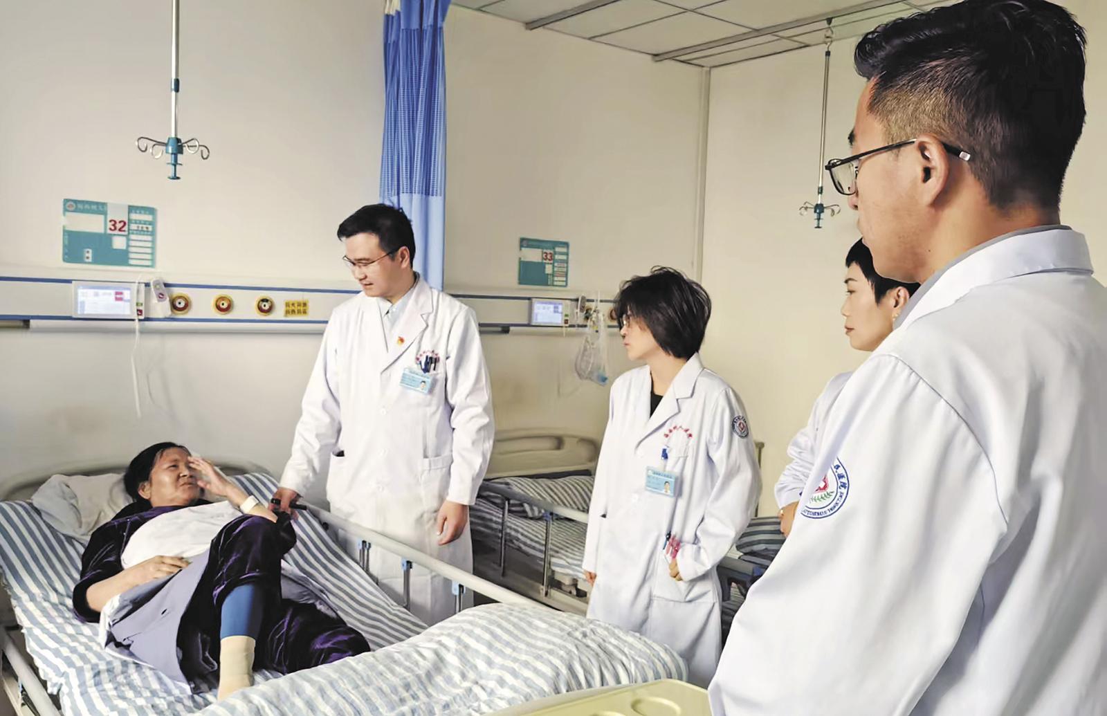 刘辉(右四)带领科室医生查房。海西州人民医院供图