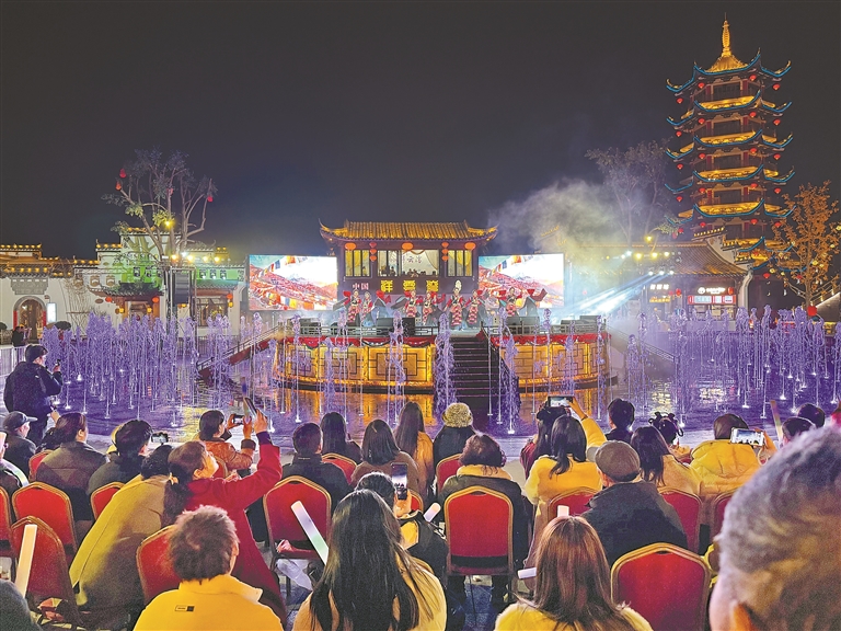 在湖北省云梦县博物馆里,古老藏戏与千年秦简隔空对话;在祥云湾文旅景区音乐喷泉舞台上,《吉祥昂仁》藏戏舞演员宛如格桑花盛开在水光潋滟间;在楚王天下大舞台上,《大鹏山》六弦琴音雄浑豪迈、舞步粗犷奔放,将神山的巍峨与雪域的壮阔搬到江汉平原;在胡金店万亩油菜花海中,《多彩的哈达》为春日花海增添了浓郁的民族风情;在安陆、孝昌等周边县市,《同心结·幸福缘》舞蹈节奏欢快、《日喀则我为你牵挂》三重唱旋律悠扬,将高原辽阔与南国柔美完美融合……