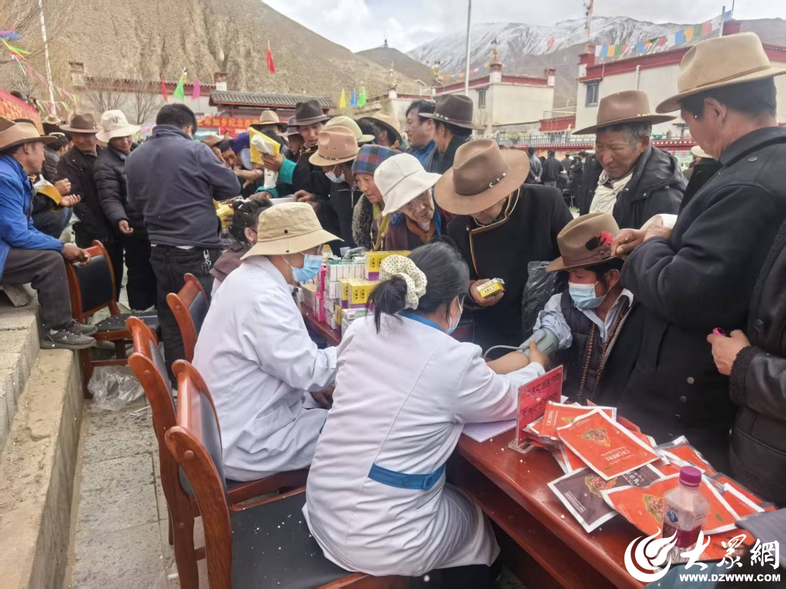 3月27日,义诊现场突降冰雹,气温骤降,寒风刺骨。面对恶劣天气,潍坊援藏医疗队没有一人退缩。大家迅速用身体护住医疗设备和药品,将行动不便的老人护送至安全区域,在风雪中坚持完成全部诊疗服务。当天累计服务群众百余名,发放常用药物200余盒。
