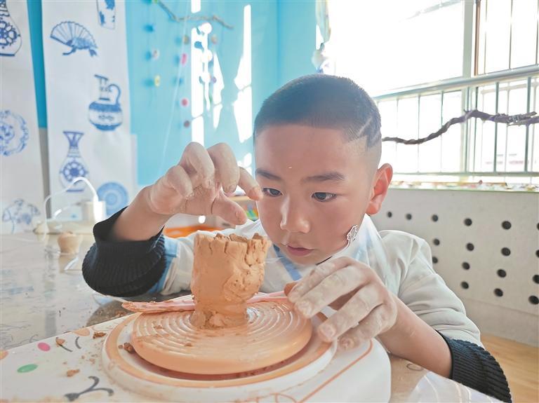 在陶艺课上重塑泥土。