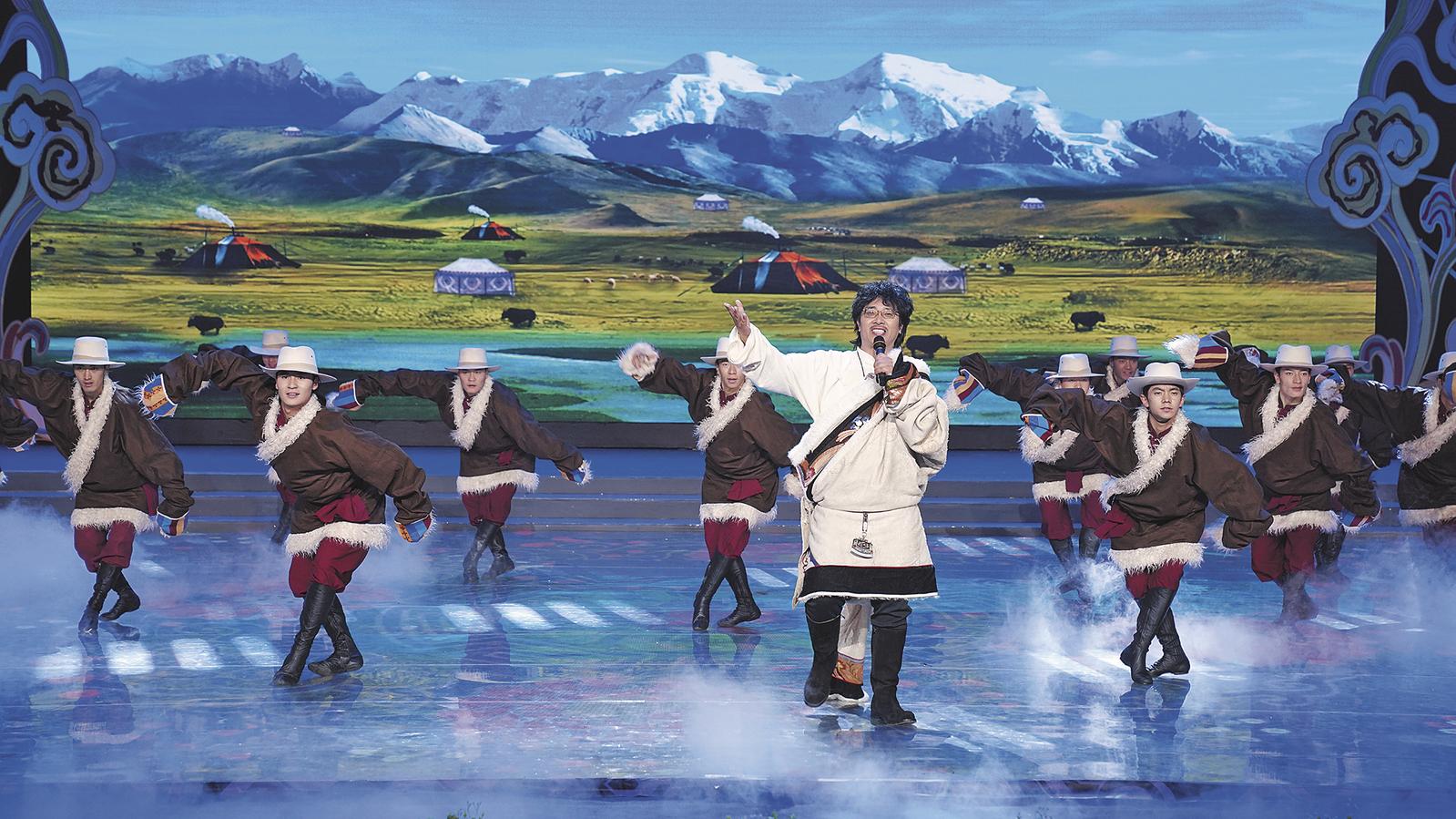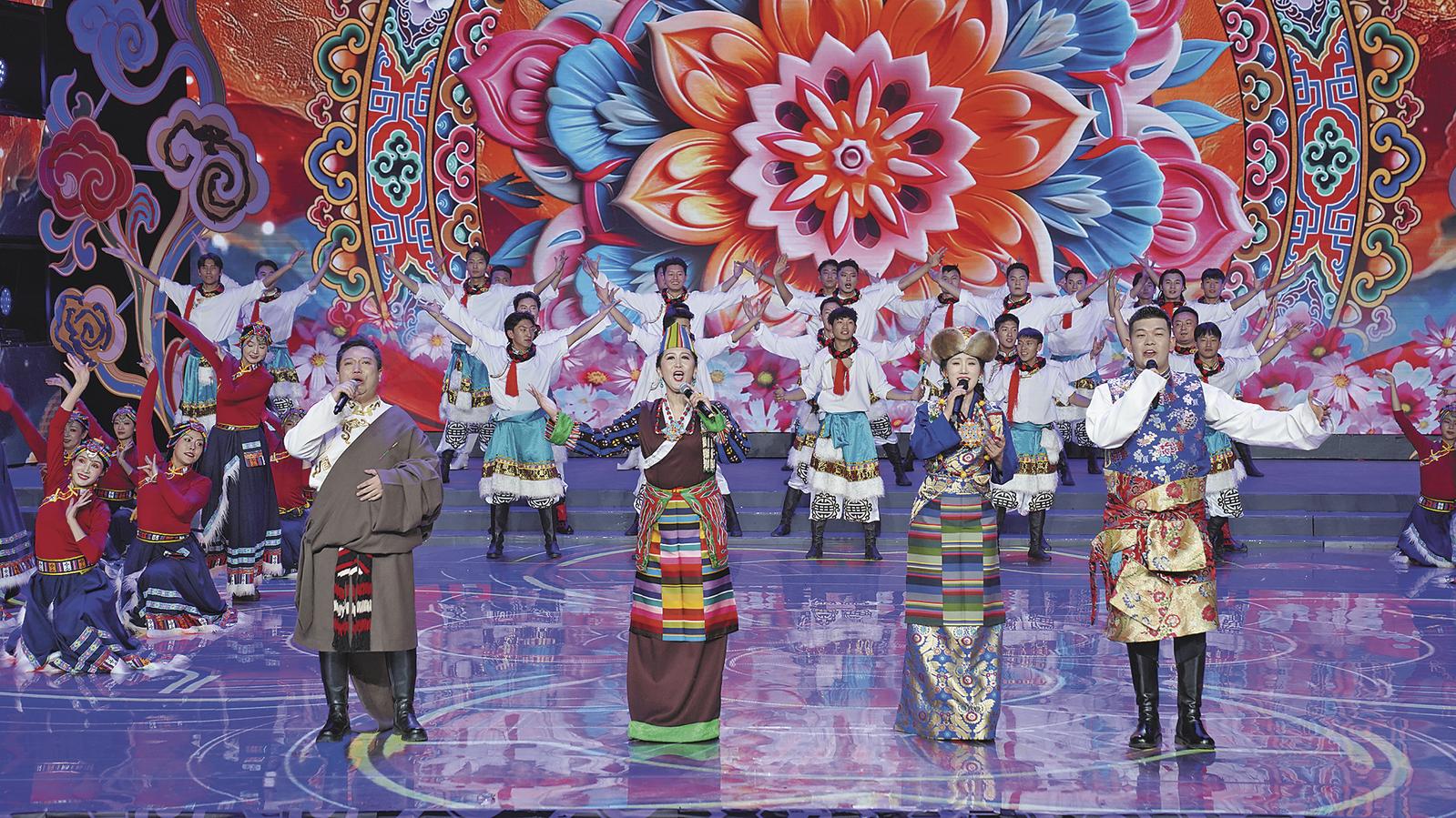 扎西朋达等演唱的尾声歌曲《花的故乡》,以悠扬旋律喻幸福之花遍开神州,寄语新春、祝愿祖国繁荣昌盛,彰显共赴新征程的踔厉奋发之姿。本版图片由久买多杰摄
