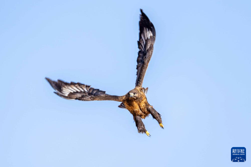 一只大鵟在羌塘草原展翅飞翔(6月8日摄)。新华社记者 刘金海 摄