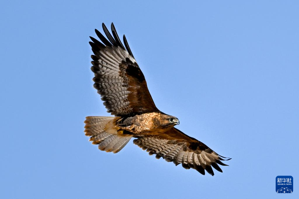 一只大鵟在羌塘草原展翅飞翔(6月8日摄)。新华社记者 旦增尼玛曲珠 摄