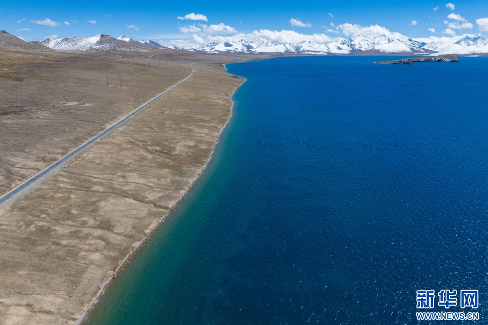 10月9日拍摄的普莫雍错观景点(无人机照片)。新华网 旦增努布 摄