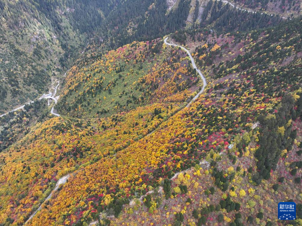 深秋已至,位于西藏林芝的色季拉山层林尽染,构成一幅壮丽的高原画卷。