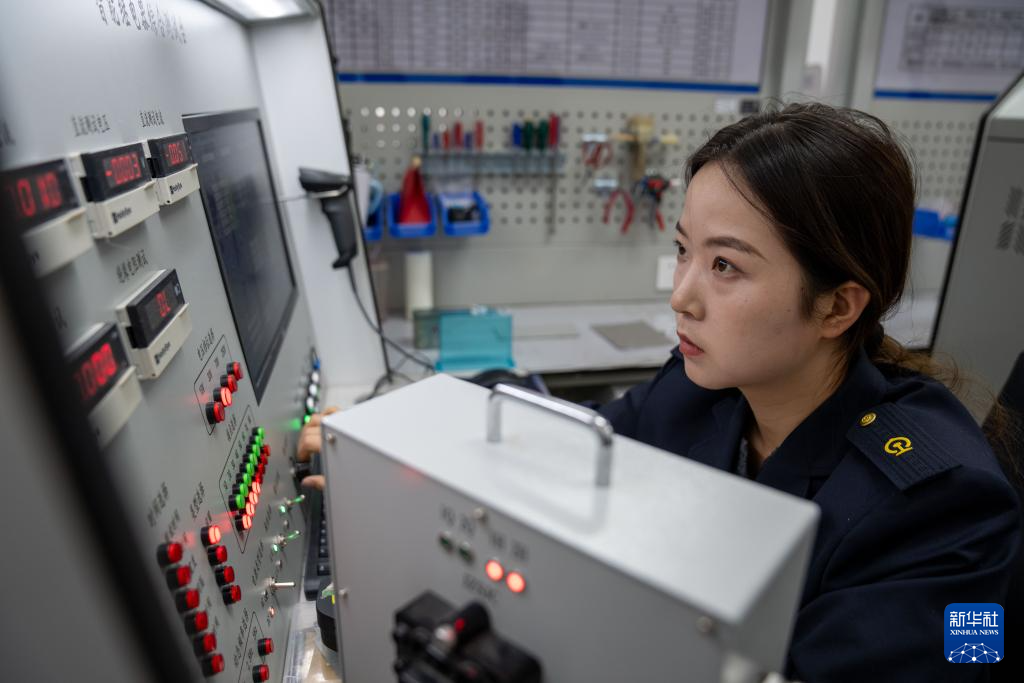1月6日,拉萨基础设施段电务专修车间继电器检修工区的信号工德吉卓玛在检测继电器。新华社记者 旦增尼玛曲珠 摄