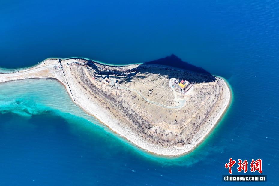 1月17日,西藏羊卓雍错日托寺风光。日托寺位于羊卓雍错东北岸一半岛上,是半岛上仅有的建筑,形成了“古刹”“孤寺”景观,近年在网络平台持续火热,成为游客打卡西藏的热门地标。(无人机照片)