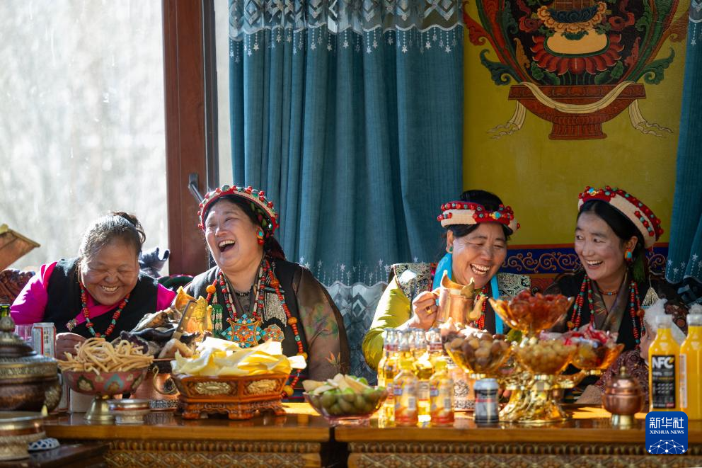 1月20日,日喀则市桑珠孜区聂日雄乡楚松村村民在欢度新年。新华社发(旦增努布 摄)