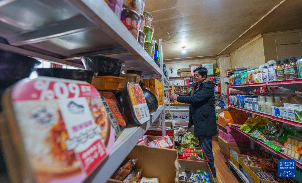 2月5日,玉麦乡一家超市的老板在整理货架。新华社记者 丁增尼达 摄