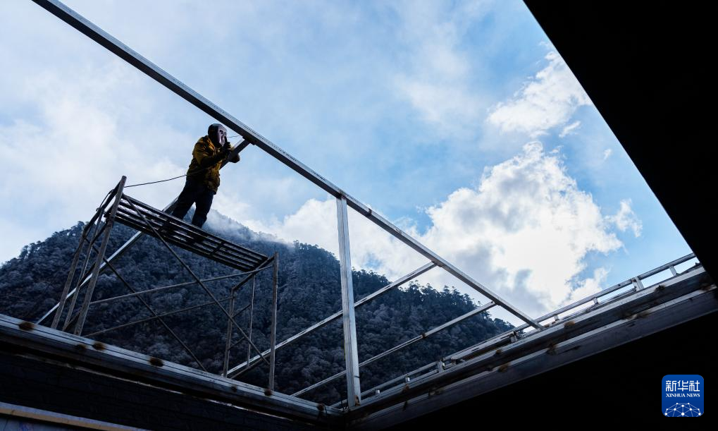 2月5日,玉麦乡村民在焊接民居的天花板钢架。新华社记者 丁增尼达 摄