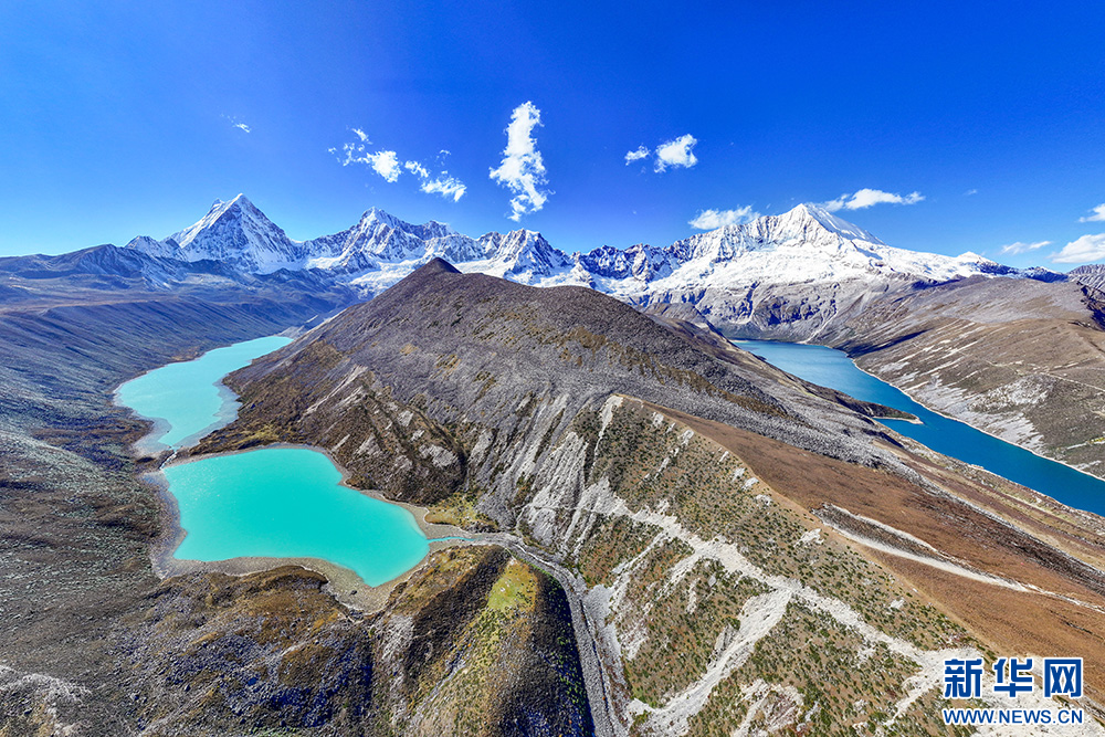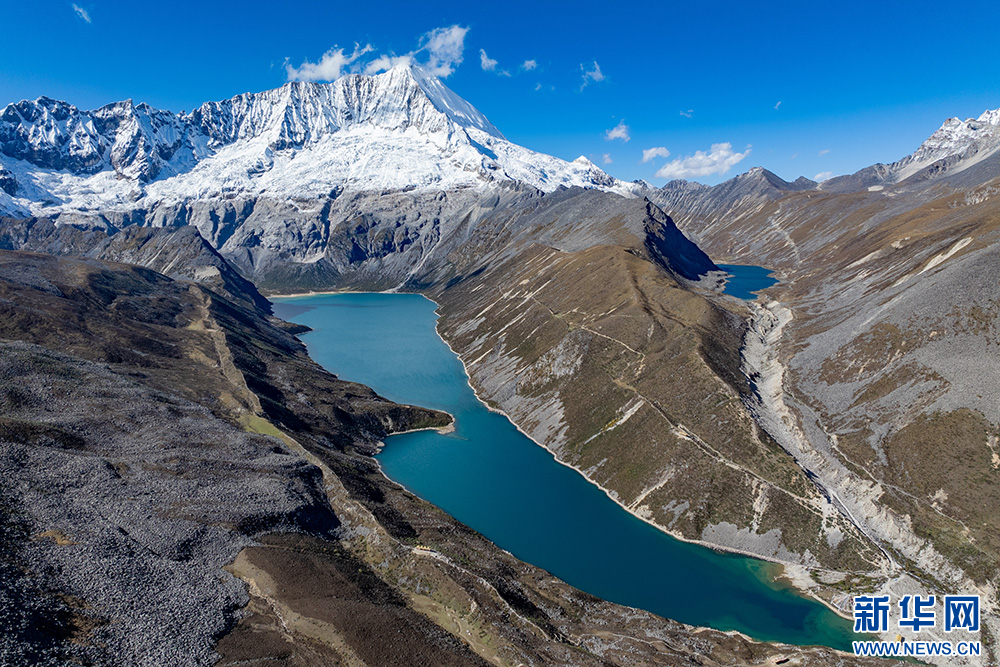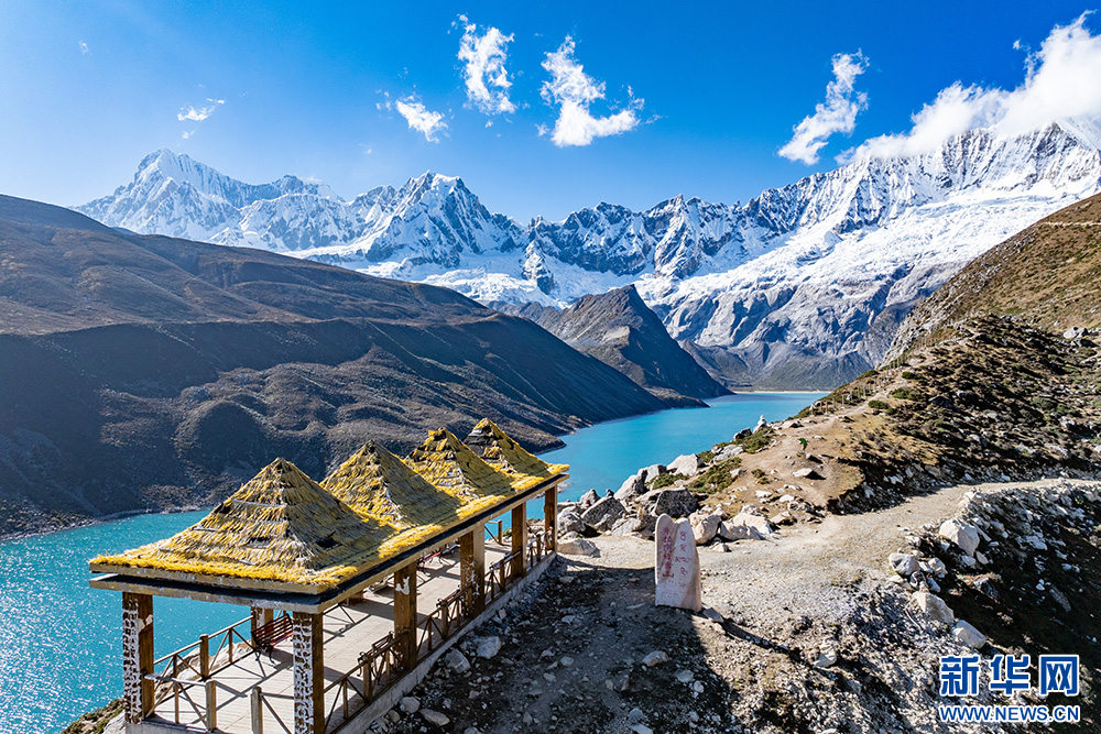 10月11日拍摄的库拉岗日-白玛林错景区观景台(无人机照片)。新华网 旦增努布 摄